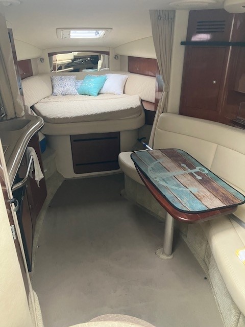 There's nothing quite like the exhilarating profile of this sleek 320 Sundancer. Its dramatic lines and bold colors make everything else look like it's sitting still. Exciting features include cockpit wet bar with Corian counter, extra-wide bench-style helm seating with two flip-up thigh-rise bolsters.
