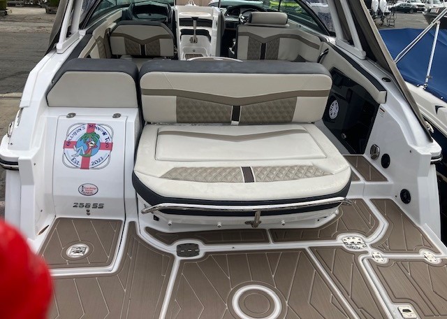 This 2024 258 SS has 1250 hours of Hudson River boating. Desirable upgrades include full enclosure and a bow thruster. Factory installed options include wakeboard tower, SImrad GPS/Chart plotter, Trim tabs, and pump out porta-potti. Powered by a Mercruiser 6.2 Bravo III 300 hp. Listed exclusively with PennyBridge Marine. This is a very clean boat with unique upgrades. Note: There is no trailer included.
